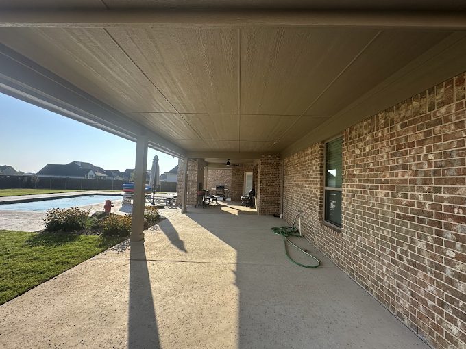 Another important material decision is the roof itself. In Sherman, TX, patio covers are often designed with either a solid roof or a pergola-style top. Solid roofs provide full shade and rain protection, essentially turning your patio into an outdoor room that functions in most weather. Pergolas, with their open slats, offer dappled shade and a more open feel, which can be ideal if you want to maintain more natural light or support climbing plants.